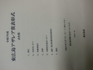 2月7日に東広島芸術文化ホールくらら小ホールにて、令和7年度の東広島アザレア賞表彰式が開催されました。この賞は、教育・文化及びスポーツの振興を図ることを目的に、東広島市の学校教育・社会教育・文化及びスポーツの分野で功績をあげた方を対象に、東広島市が表彰しているものです。全国大会で1位か2位相当か、国際大会で1~3位入賞という成績が表彰基準になっています。